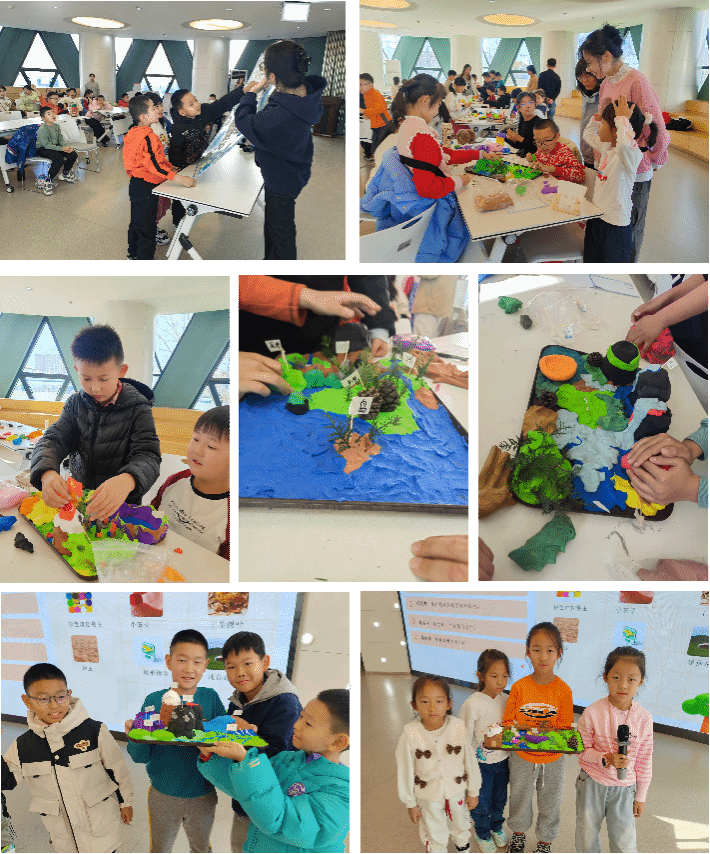 11月16日,“探秘地球的立体面孔”地质科普活动,则从地理学与地球科学的角度拓展学生的认知边界。我院研究生杨雪和董朝仙以“明信片+立体地图”激发学生兴趣,通过触摸地形模型、绘制等高线、识别家乡地貌,引导学生从身边环境出发理解抽象概念。在“地形复活”手工环节,学生用粘土、沙石等材料塑造五种地形,并在“家乡地形打卡”任务中走进自然,实现“知识—感知—认同”的情感升华。