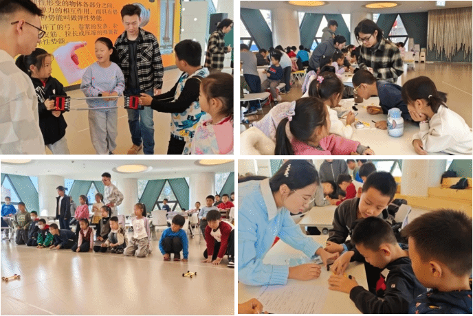 11月2日,“小小汽车工程师”主题活动接棒开展。我院硕士研究生康兆鹏、曾荣炜通过动画溯源、原理演示、动手拼装与赛道实验四大环节,引导学生在问题中思考、在实验中验证。孩子们不仅掌握了“弹性势能”与机械传动的基本原理,更通过改变橡皮筋圈数、观测行驶距离,理解了变量控制与科学探究的基本方法,激发了他们对动力机械与绿色能源的深层兴趣。