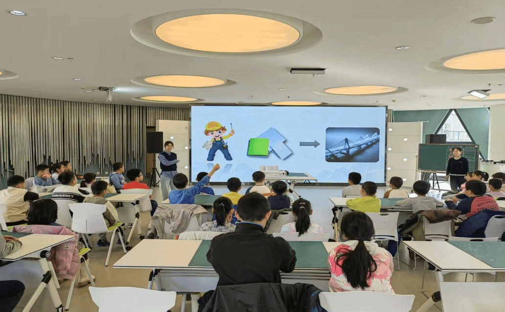 10月26日,首场活动“纸桥的力学魔法”率先启动。孩子们在我院硕士研究生吴婧雯、曹国佳的带领下,从桥梁发展史入手,理解结构力学的基本原理。通过“桥墩承重测试”与“框架稳定性实验”,学生自主发现圆形桥墩的抗压优势与三角形结构的稳定特性,并亲手设计、制作、优化纸桥模型。在承重测试中,学生们不断迭代设计,体验从失败到成功的完整工程实践过程,初步建立起结构设计与力学分析的科学思维。