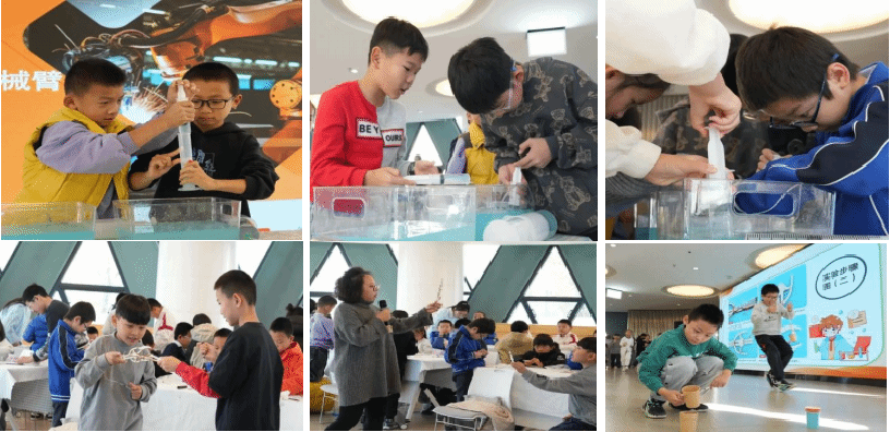 11月9日,作为科技教育的前沿课题,液压传动课程以“会用水传递力量”为核心,我院硕士研究生李欣然带领学生走进帕斯卡定律的奇妙世界。通过注射器推压比拼、液体压缩性对比、三孔量筒实验等环节,学生直观感知液体压强与深度的关系。在液压机械手制作与“纸杯搬运赛”中,孩子们将原理转化为工程产品,在协作中掌握液压系统组装、排气与操控技巧,初步培养了系统工程与团队协作能力。