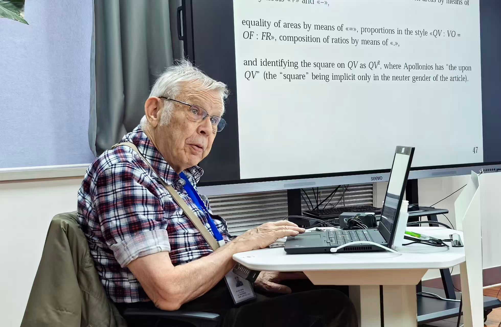 第二讲为“从‘局部自明’经批判到公理化意识形态的演进——希腊理论几何及其后续解读的再思考”。延斯教授指出希腊理论几何公理体系由局部自明性知识经批判反思逐步发展而来,以达迪代数运算、希波克拉底月牙形求积等为证,追溯从早期依赖传统几何法则,到古希腊学者通过批判竞争推动推理严谨化,最终经亚里士多德思想奠基、欧几里得《几何原本》确立范式的脉络,凸显了其在社会文化语境下的多元发展历程。
