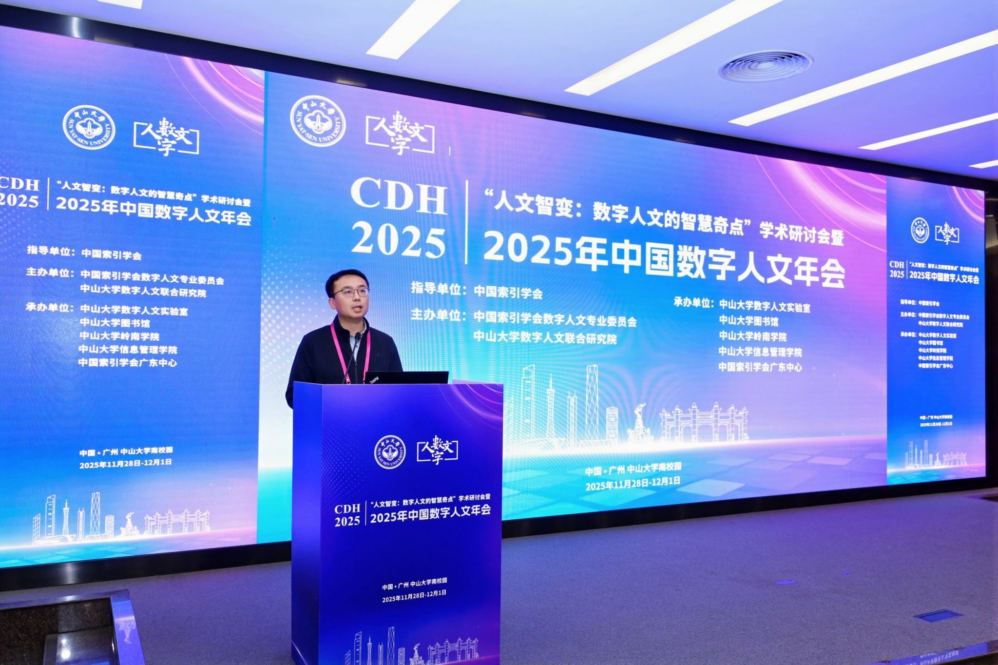 2025年11月29日至30日,“人文智变:数字人文的智慧奇点”学术研讨会暨2025年中国数字人文年会(CDH2025)在广州中山大学成功举办。本次会议由中国索引学会指导,中国索引学会数字人文专业委员会和中山大学数字人文联合研究院主办。作为中国数字人文领域规模最大、影响力最广的学术盛会,中国数字人文年会自2019年起至2025年已成功举办七届。年会为专家、学者、学生以及从业人员提供了重要的学术交流平台,推动了人文学科研究范式的革新,促进了跨学科融合和协同发展,成为数字人文研究与实践的风向标。